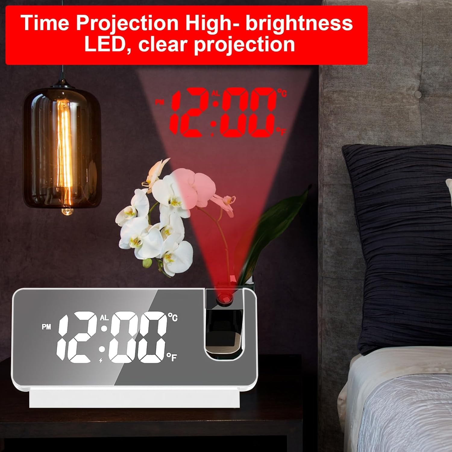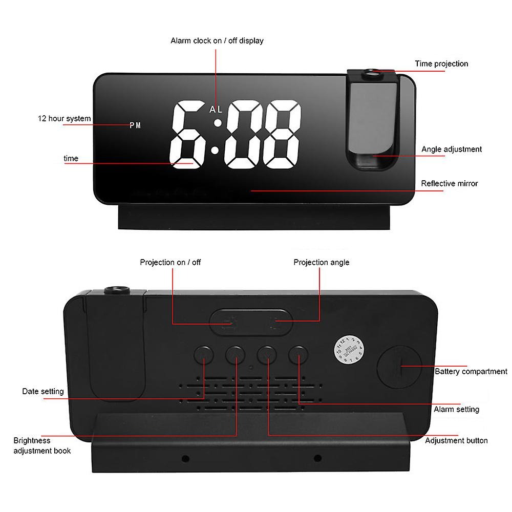 - 1. New projection alarm clock, can display temperature and humidity, with projection function, automatic sensitization, automatic sleep, brightness adjustment.